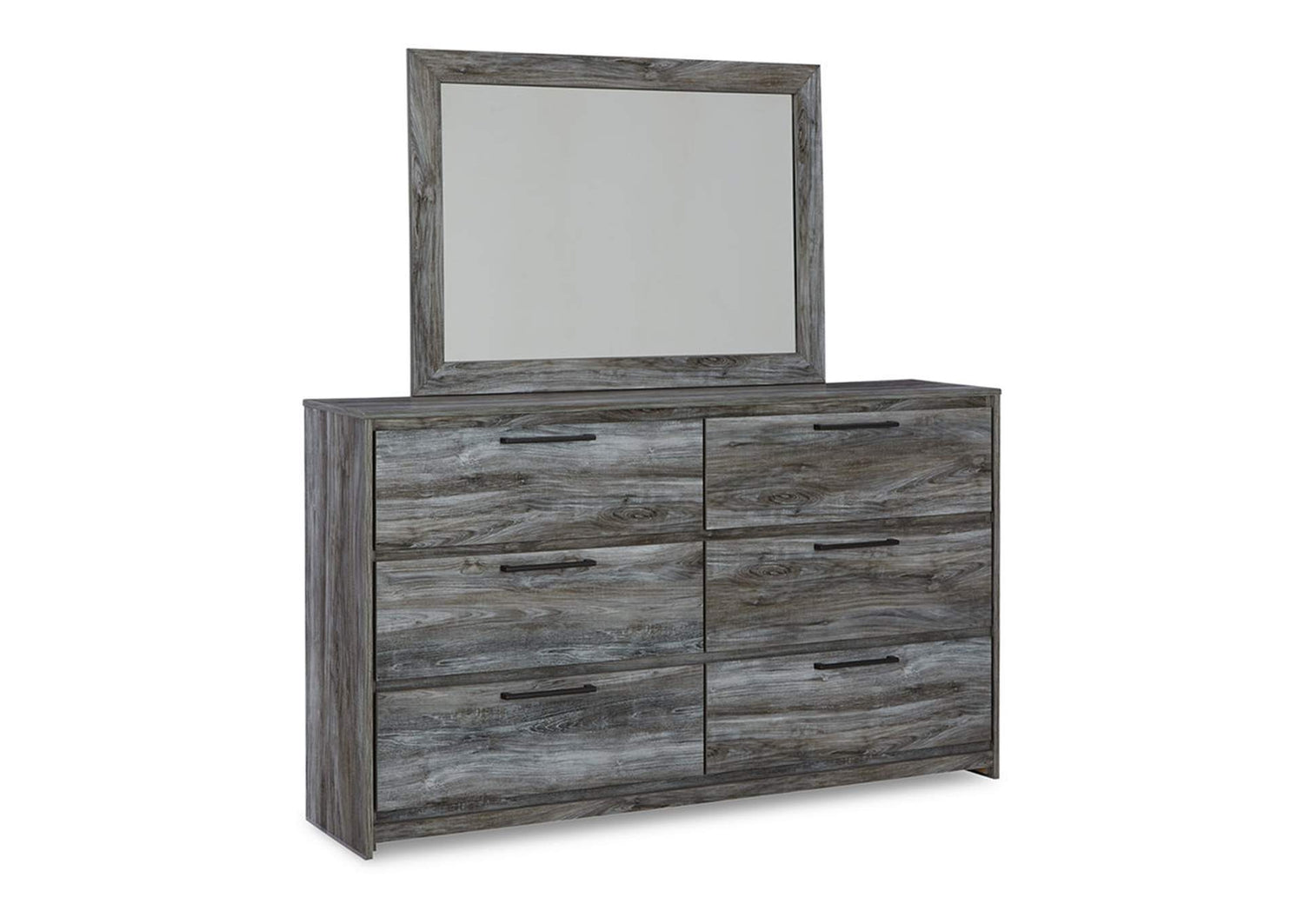 Mirrored Dresser: Features 6 smooth-gliding drawers with linear pulls in an antiqued bronze-tone finish and a mirror that can be attached to the dresser or hung on the wall.