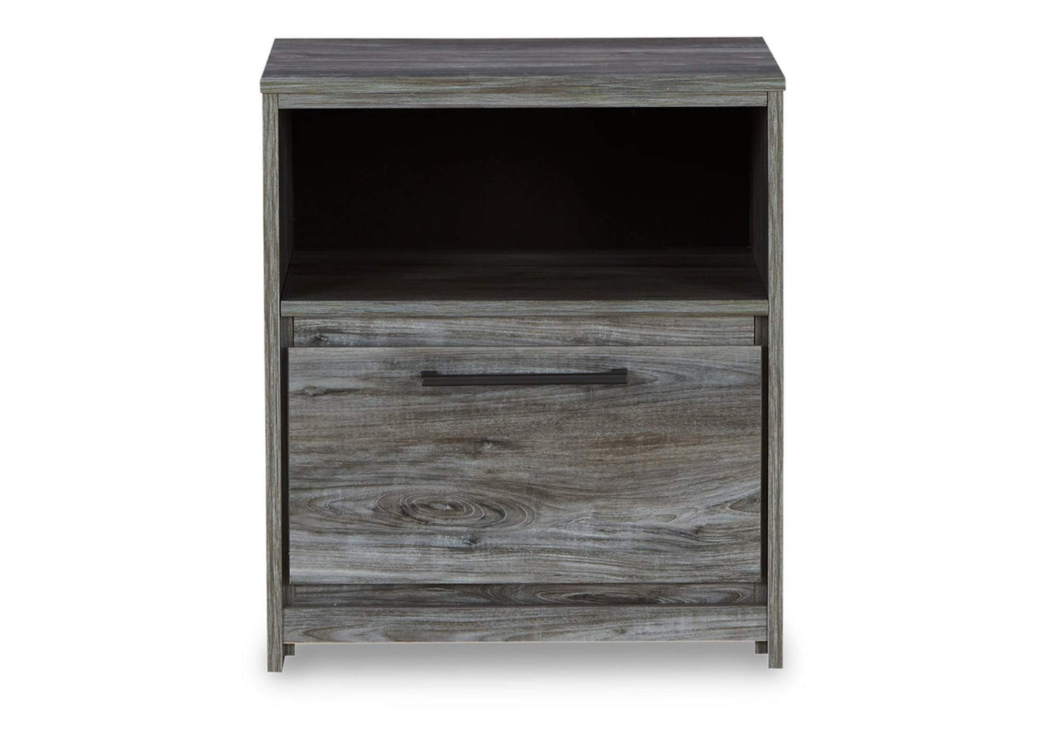 USB Nightstand: A functional bedside companion featuring one drawer, an open cubicle, and a slim-profile USB charging station.