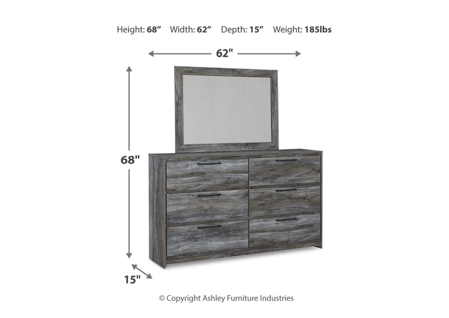 Dresser & Mirror: 62" W x 15" D x 68" H.