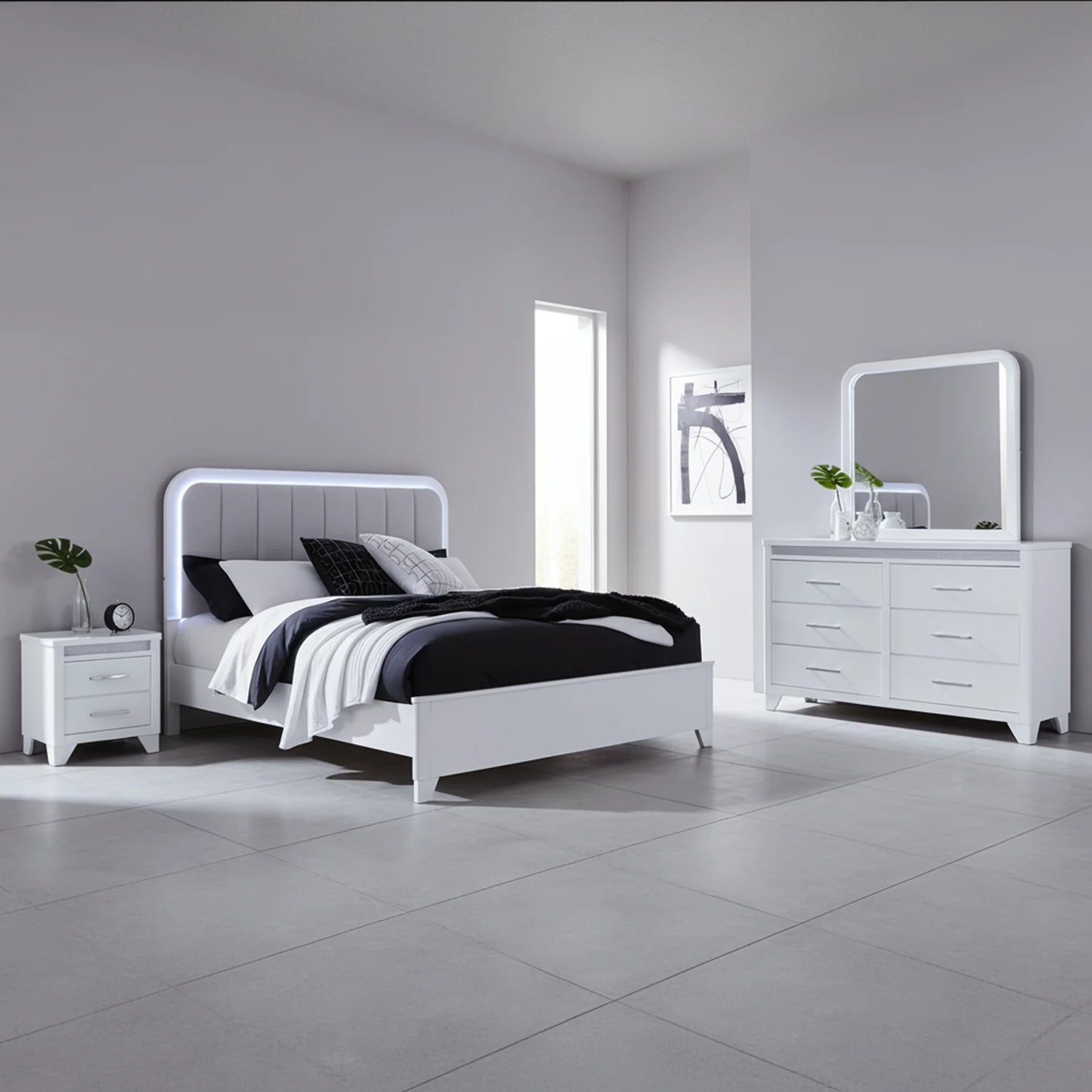 Jarlee Modern White Bedroom Set with LED Lighting | Tampa, Orlando & Fort Myers Store