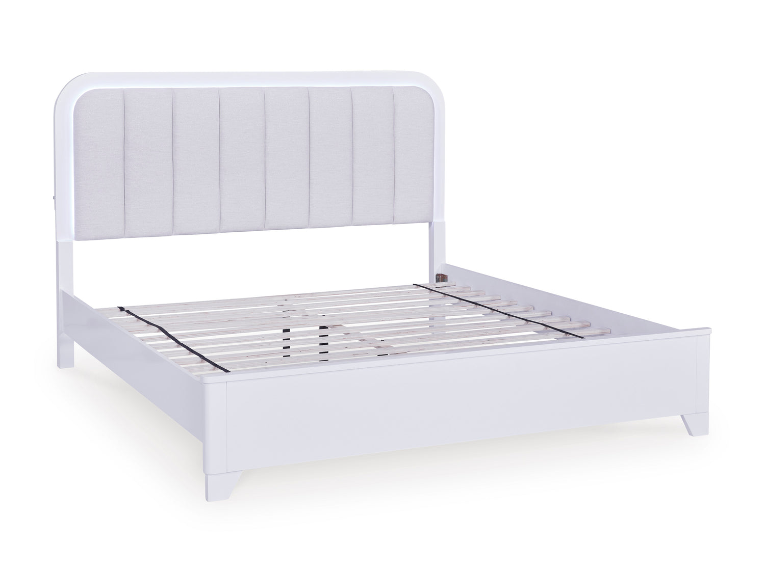• Jarlee Upholstered Panel Bed: Features a polyester upholstered headboard with integrated LED lighting and a durable white paint finish.