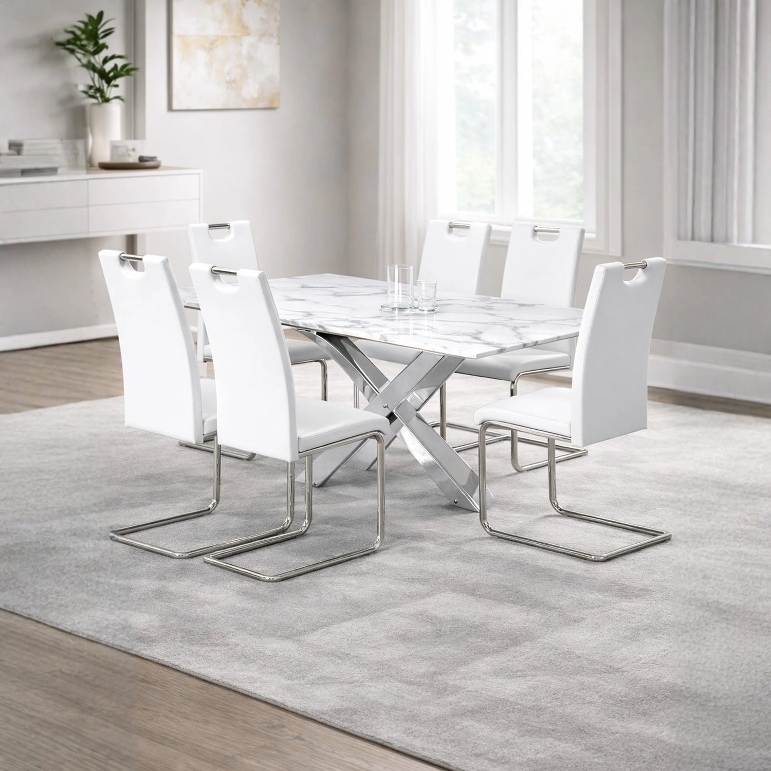 Modern White, Black & Silver Dining Set | Furniture Store in Tampa, Orlando & Fort Myers | $1,199 - 7 Pc. Set (1 Table - 6 Chairs) / Black is backordered and will ship as soon as it is back in stock.