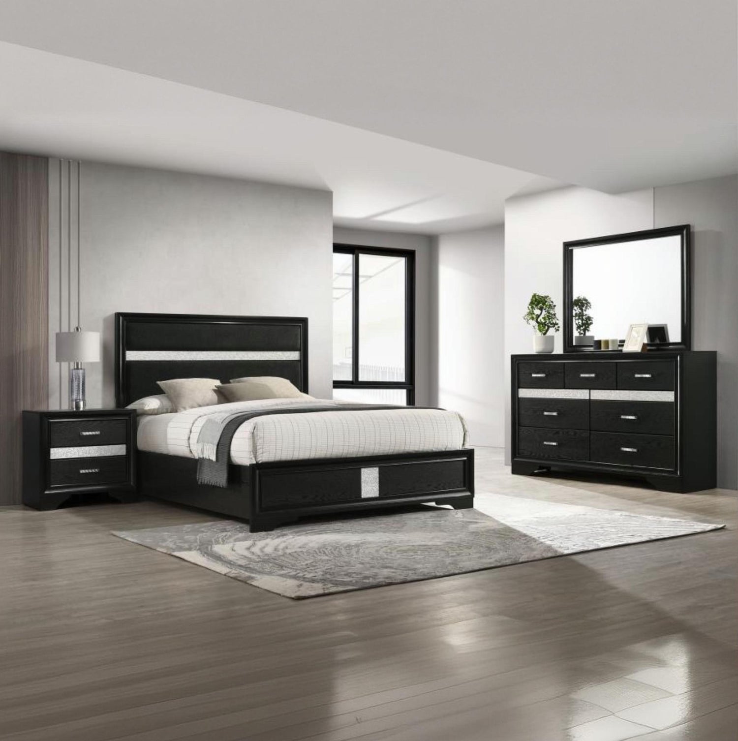Transform your bedroom into a glamorous oasis with the Miranda 4-Piece Bedroom Set, available at Ocean Furniture, your local furniture store in Tampa. This stunning bedroom set features a modern design with sparkling rhinestone accents, adding a touch of elegance and sophistication to your space.