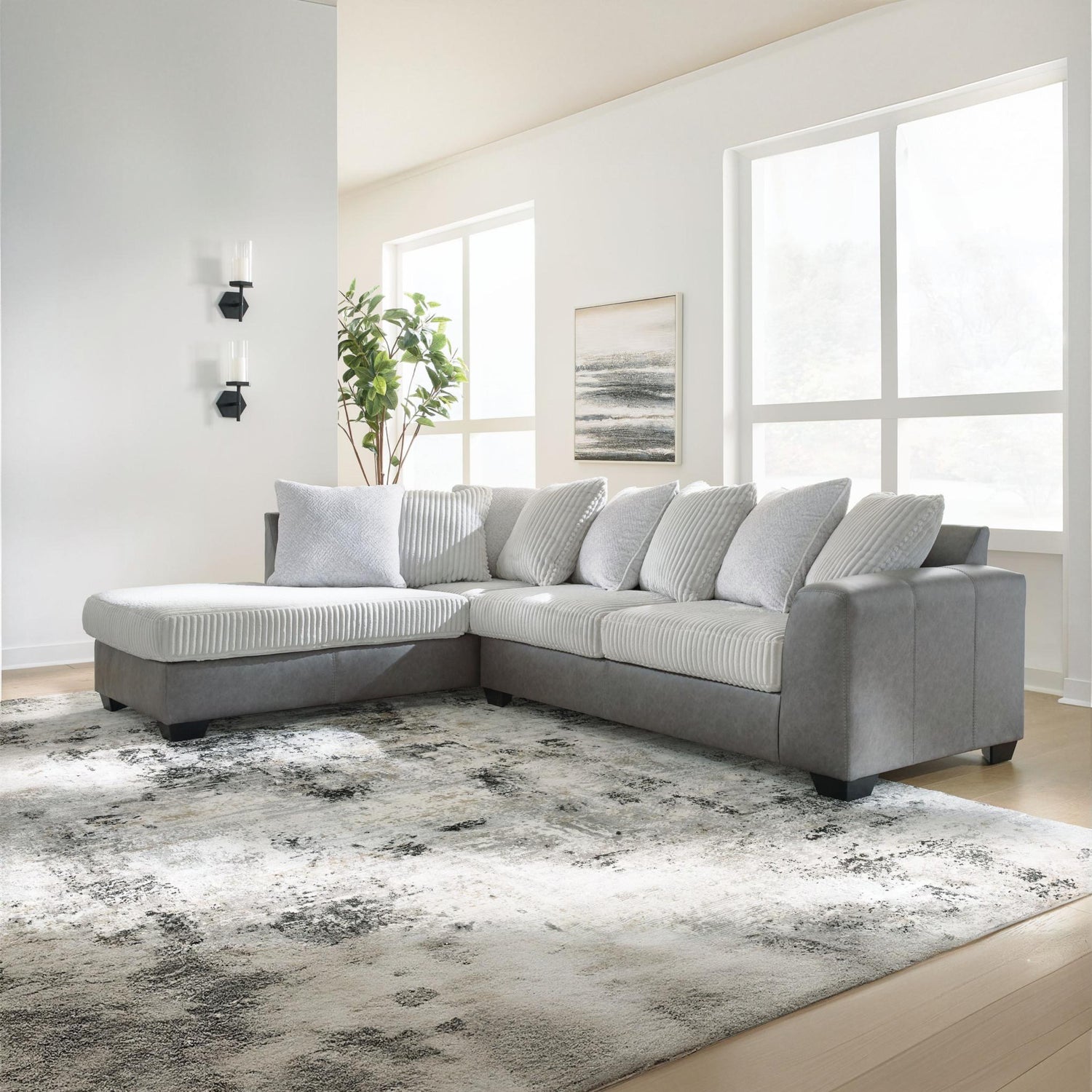 Clairette Court Sectional - Furniture Store - Dark Gray / Light Gray / 2 Pc. Left Arm Facing Corner Chaise Sectional is backordered and will ship as soon as it is back in stock.