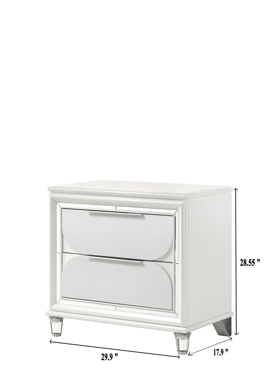 - Chrome Handles: The chrome handles on the dresser and nightstand provide a stylish contrast against the white finish.