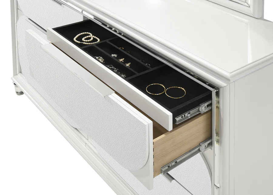 - Backlit Mirror: The dresser includes a beautiful backlit mirror, perfect for getting ready in the morning or adding a touch of ambiance to your bedroom.