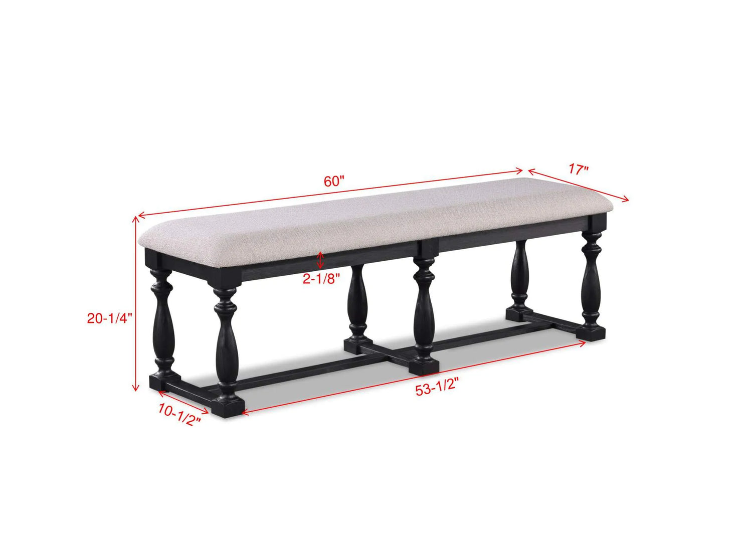 - Plush Upholstered Seating: The set includes comfortable upholstered chairs and a matching bench, providing plush seating that invites guests to linger.